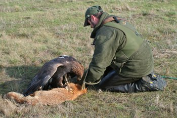 Der Adler kennt seinen Falkner ganz genau,er liebt es mit ihm als Kumpan zu jagen.